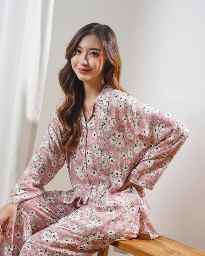 Piyama semi tunik lengan panjang berpotongan ‘loose fit’ dengan aksen melengkung di bagian bawah blus depan maupun belakang untuk bergerak lebih leluasa dan membuat kesan lebih luwes. Pyama ini berbahan rayon premium yang adem dan ringan, cocok dikenakan untuk kegiatan sehari-hari baik didalam maupun diluar rumah.