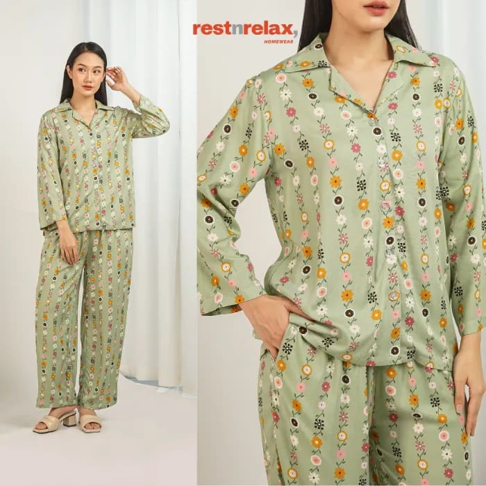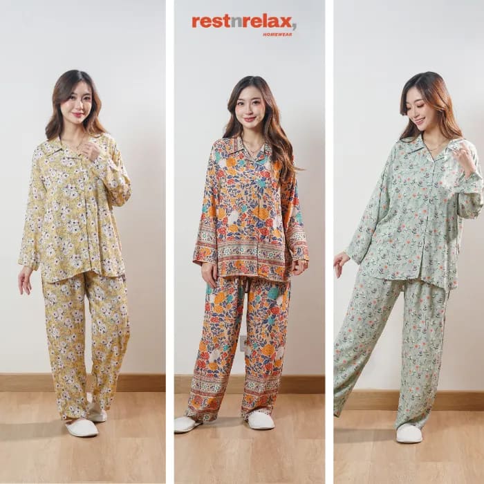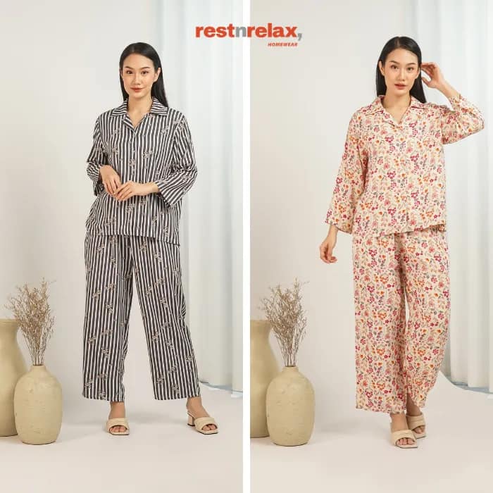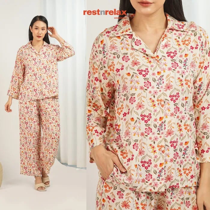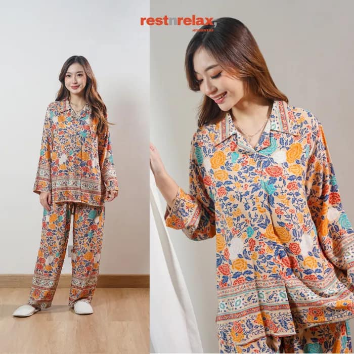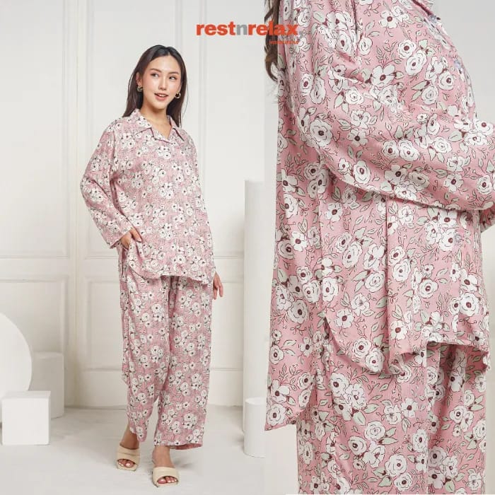Piyama semi tunik lengan panjang berpotongan ‘loose fit’ dengan aksen melengkung di bagian bawah blus depan maupun belakang untuk bergerak lebih leluasa dan membuat kesan lebih luwes. Pyama ini berbahan rayon premium yang adem dan ringan, cocok dikenakan untuk kegiatan sehari-hari baik didalam maupun diluar rumah.
