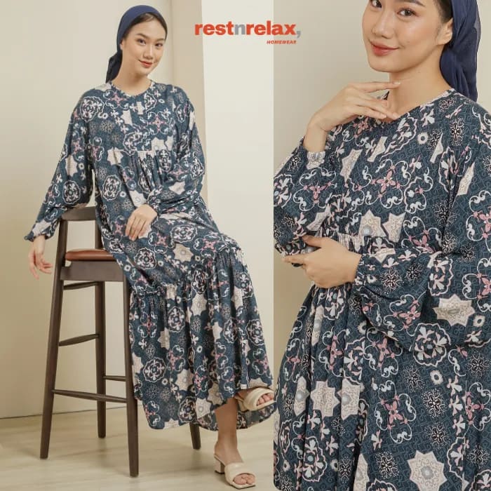 ATHINA – midi home dress lengan panjang busui friendly – rayon premium